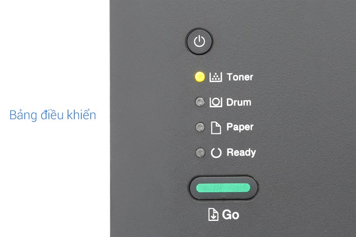 Có 4 chỉ bảo đèn LED trên bảng điều khiển gồm Toner - Mức, Drum - Trống từ, Paper - Giấy, Ready - Sẵn sàng, các chỉ báo sẽ báo hiệu các thông tin mà bạn nên biết: