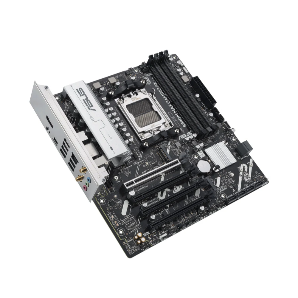Mainboard Asus B840M MAX GAMING AX-CSM DDR5 sử dụng socket AM5, nền tảng mới nhất từ AMD, hỗ trợ các bộ vi xử lý Ryzen đời mới. Sự kết hợp giữa socket AM5 và chipset B840 cung cấp một nền tảng mạnh mẽ, ổn định, đáp ứng tốt nhu cầu của game thủ và người dùng chuyên nghiệp, đảm bảo khả năng tương thích cao với các CPU hiệu năng cao, tối ưu hóa sức mạnh xử lý cho mọi tác vụ từ chơi game đến làm việc đồ họa.