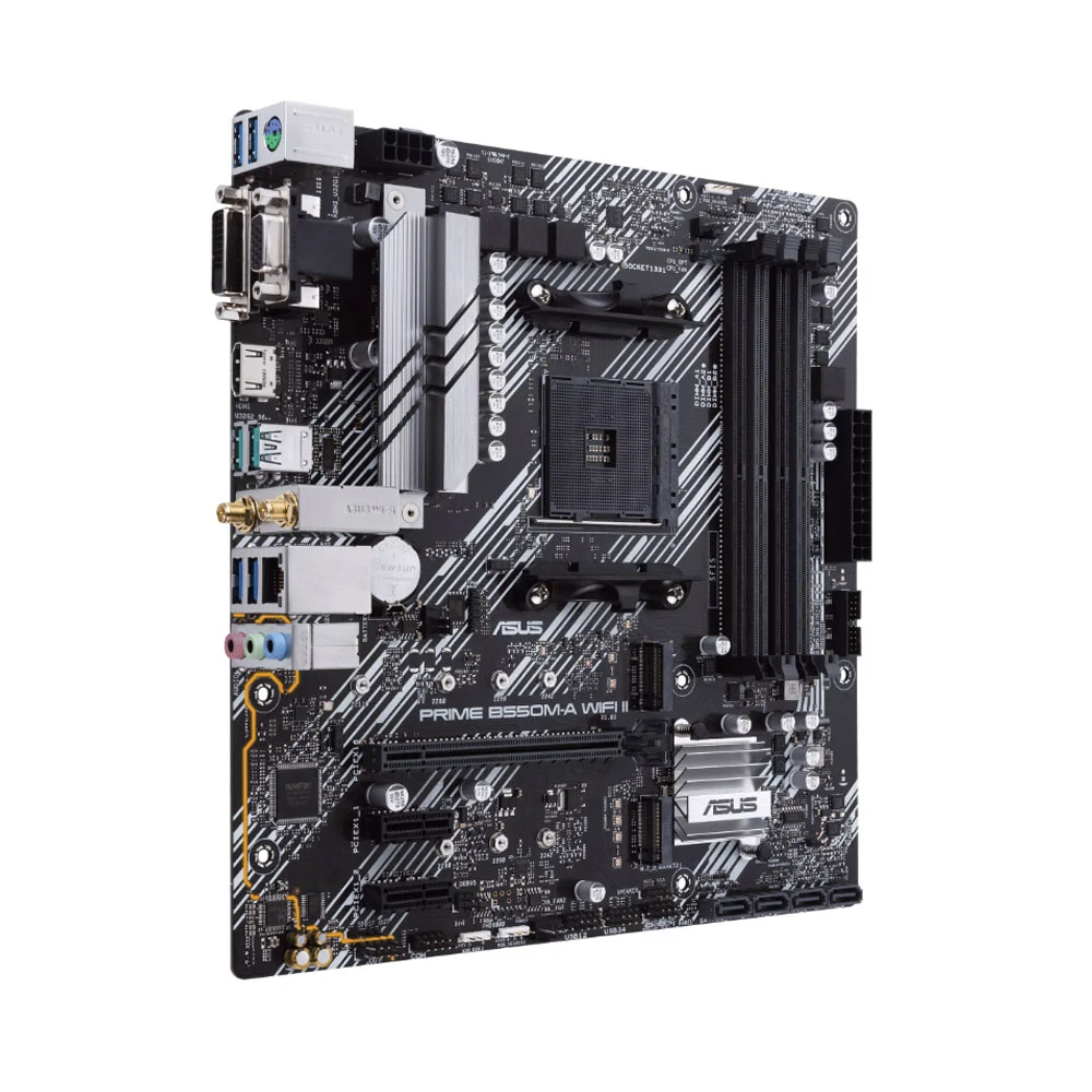 Mainboard ASUS PRIME B550M-A WIFI II-CSM DDR4 AM4 được thiết kế đặc biệt cho các hệ thống chơi game và làm việc hiệu suất cao. Với chipset B550 tiên tiến cùng socket AM4, sản phẩm tương thích với các bộ vi xử lý AMD Ryzen thế hệ mới, mang đến nền tảng ổn định và đáng tin cậy. Tích hợp kết nối Wi-Fi 6 tốc độ cao, hỗ trợ bộ nhớ DDR4 lên đến 128GB và đa dạng các khe cắm mở rộng, ASUS PRIME B550M-A WIFI II-CSM DDR4 AM4 đáp ứng mọi nhu cầu từ giải trí đỉnh cao đến xử lý tác vụ chuyên nghiệp, là lựa chọn lý tưởng cho người dùng muốn xây dựng một hệ thống PC toàn diện.